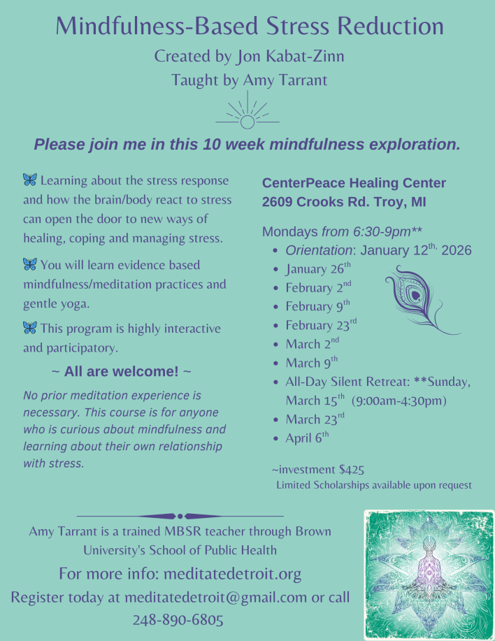 Amy founded Meditate Detroit in 2010 with a mission to coach children, teens, adults, families, educators, and business people on their own mindfulness adventures, resulting in a community of mindful thinkers. Meditate Detroit seeks to cultivate a community that is sustainable in happiness, peacefulness, health, and wellness…one breath at a time.